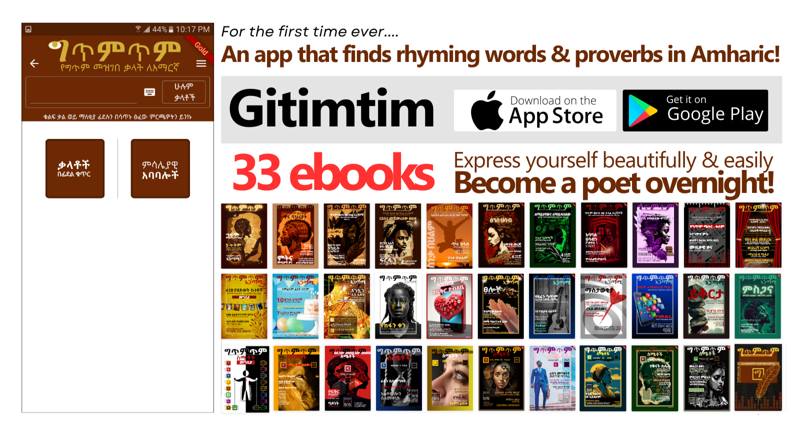 - Write poetic messages easily by learning how to in the ebooks, and using the Gitimtim Amharic Rhyming App.