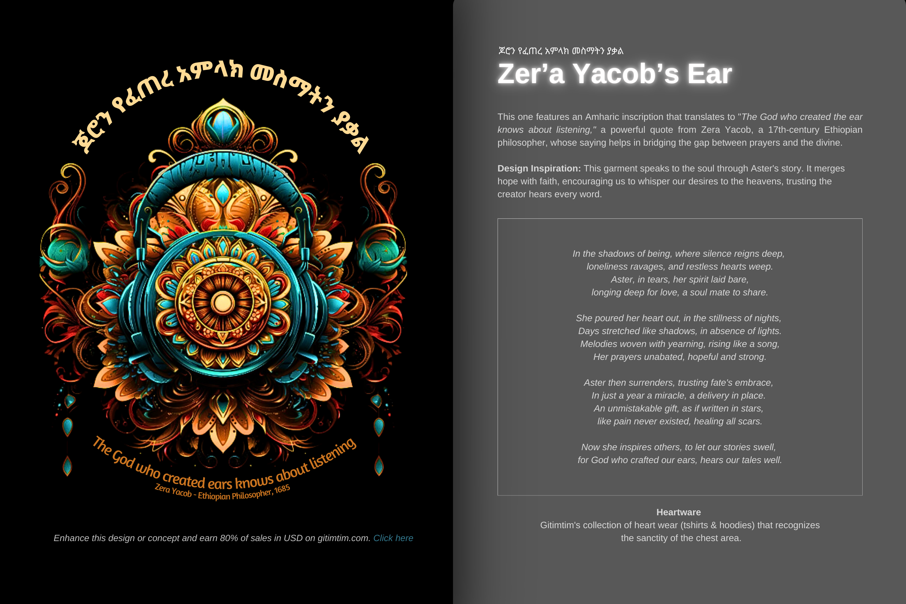 Zera Yacob's Ear - Heartware Collection - 100% Cotton T-Shirts