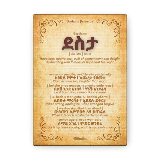 Happiness by Amharic Proverbs - Canvas Wall Art