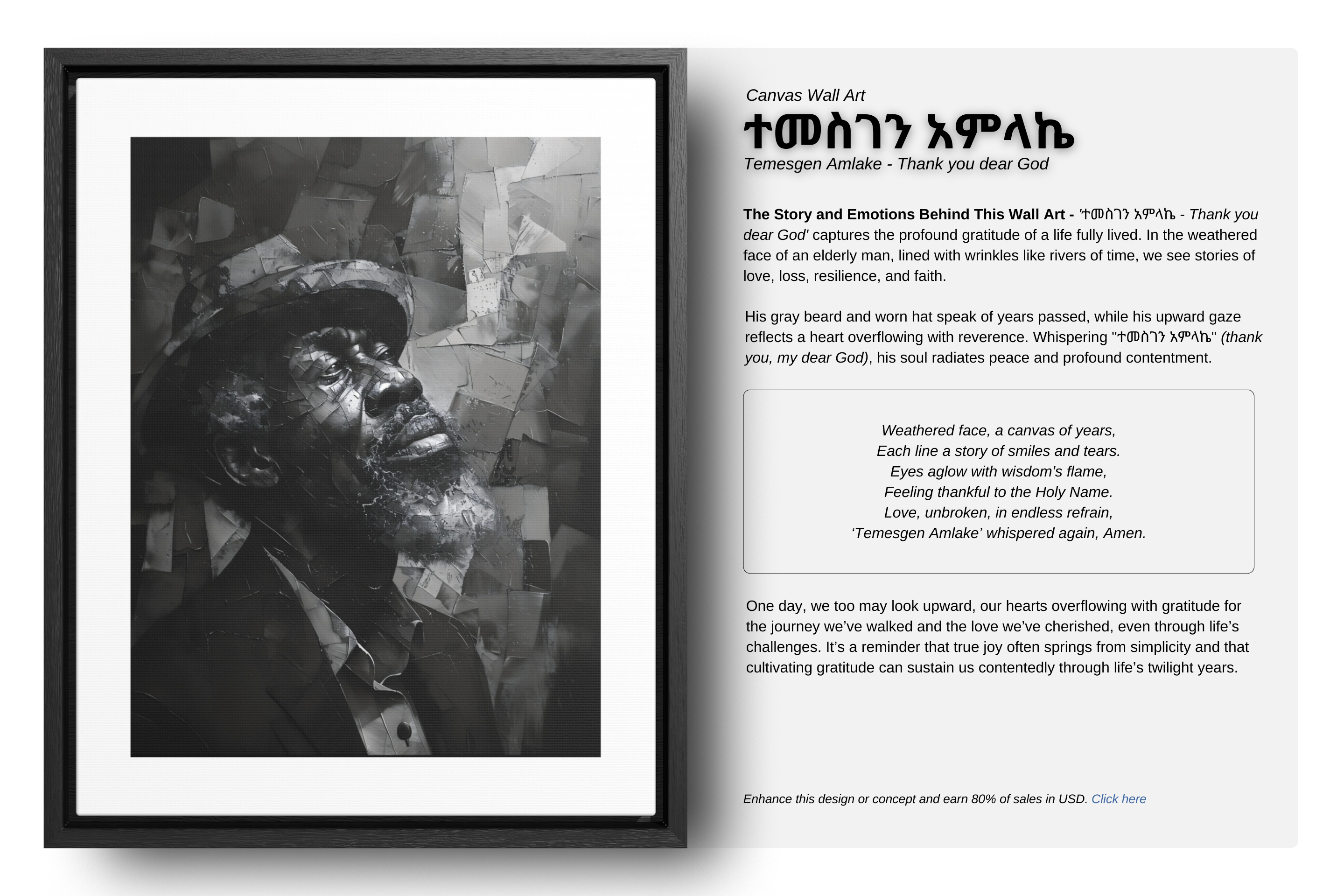 Save 25% automatically when you bundle 4 or more wall art pieces, or choose a FREE Amharic Proverbs Wall Art instead at checkout.