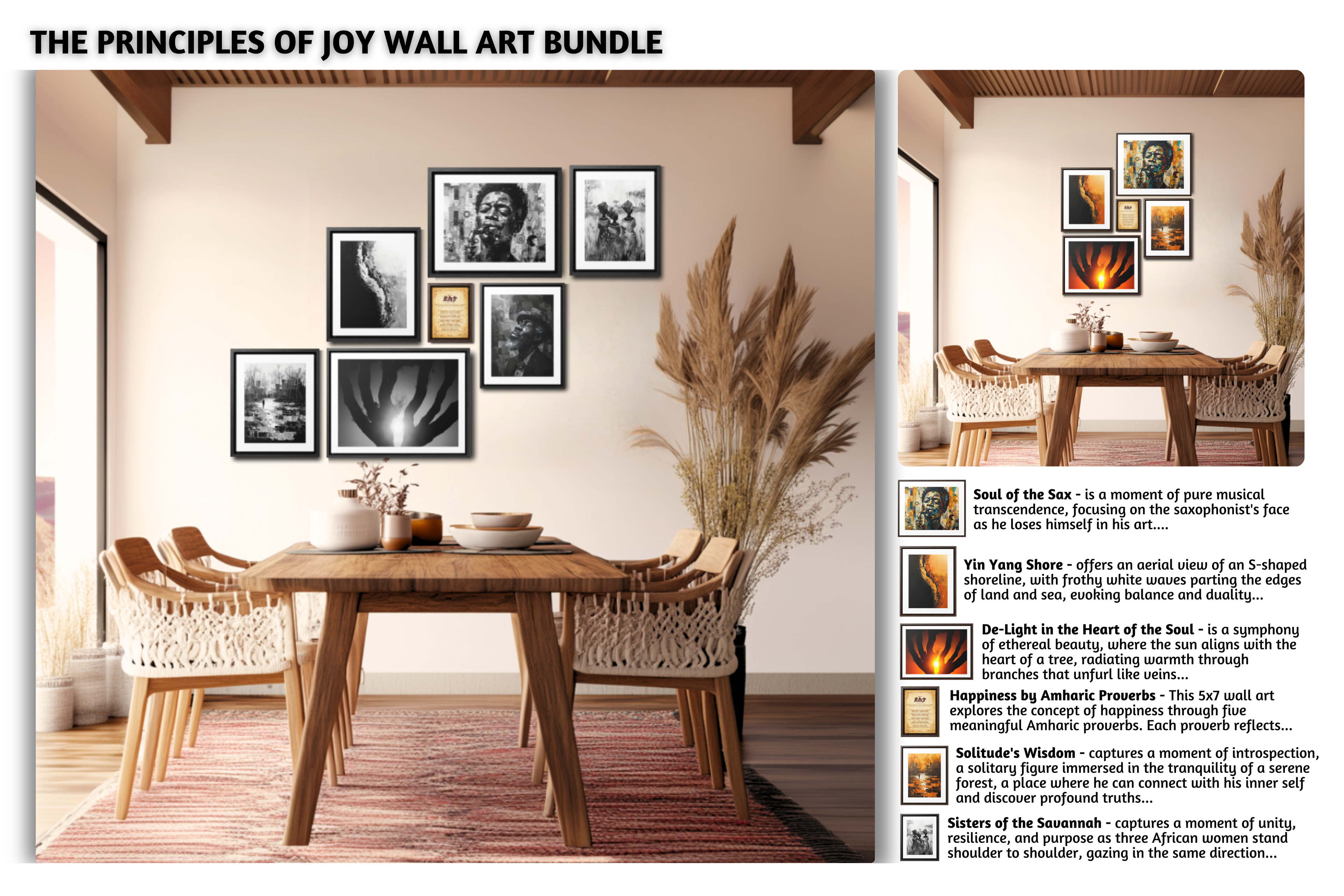 Each customizable bundle is curated with artwork and proverbs aligned to tell beautiful stories on your walls.