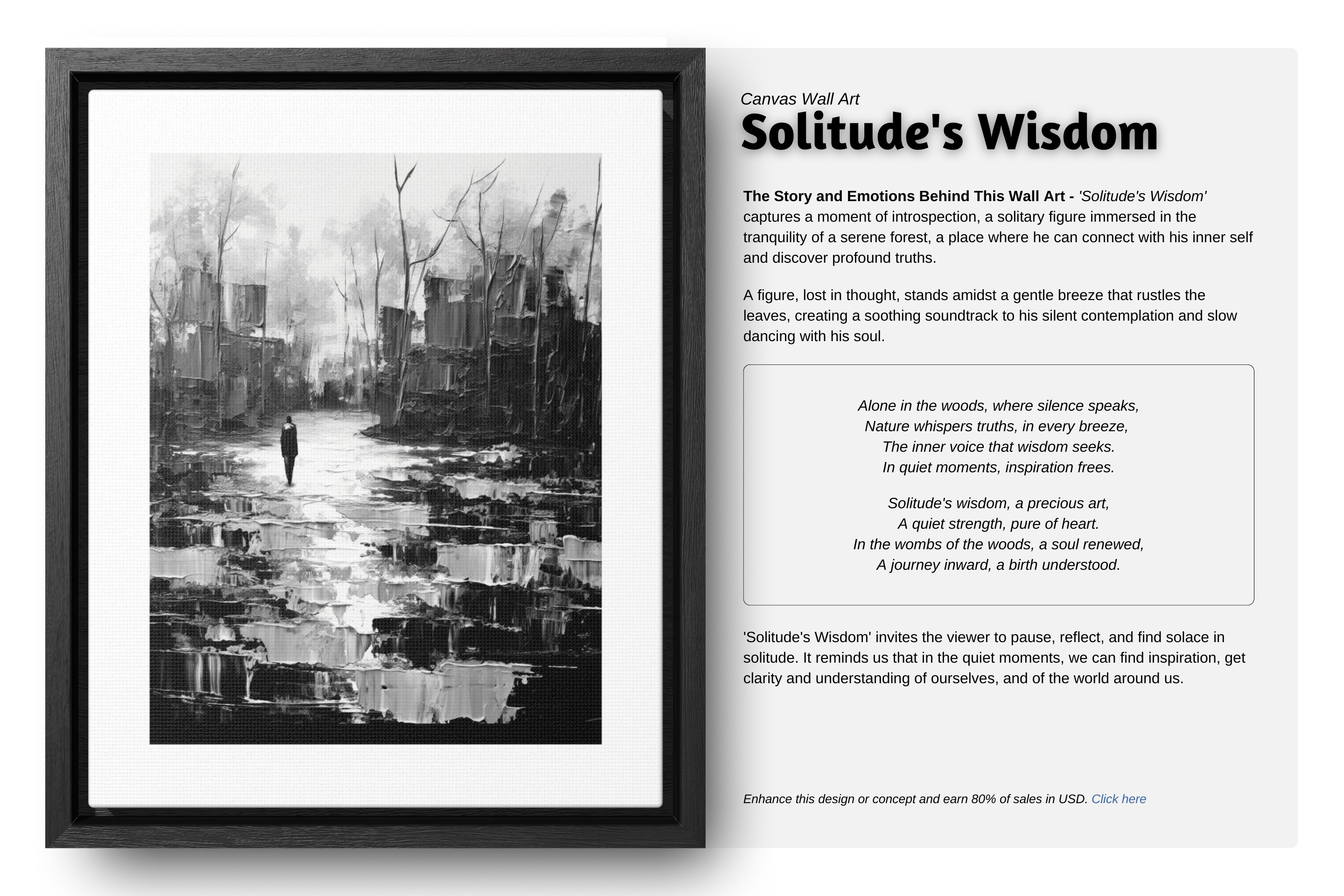 Solitude's Wisdom - Framed Canvas b&w Wall Art
