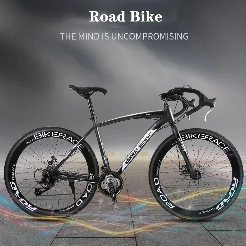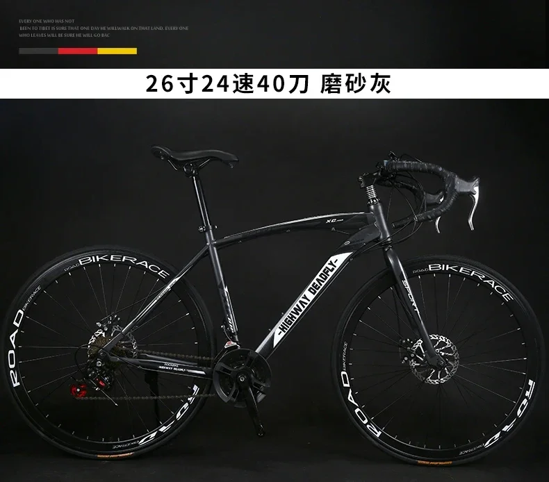 24 26 Inch Road Bike Bicycle Racing Bike Steel Frame 48cm Road Bike 24 Speed Dual Disc Mountain Gravel Bike