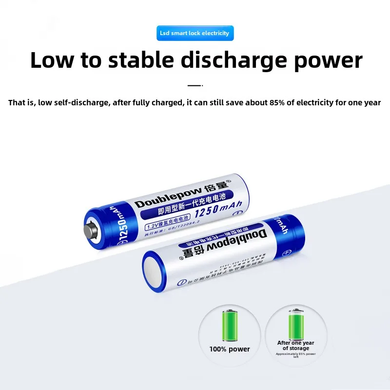 - AAA rechargeable Ni-MH battery with 1250mAh capacity