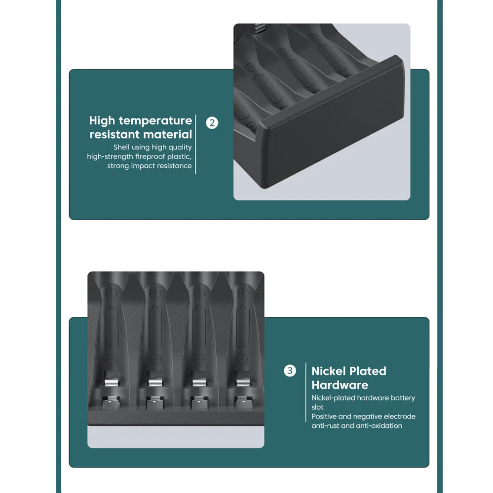 Battery Charger 4 Slot Intelligent Fast Charge with Indicator for 1.2V NiMH NiCd AAA/AA Rechargeable Batteries USB-C Micro Jack