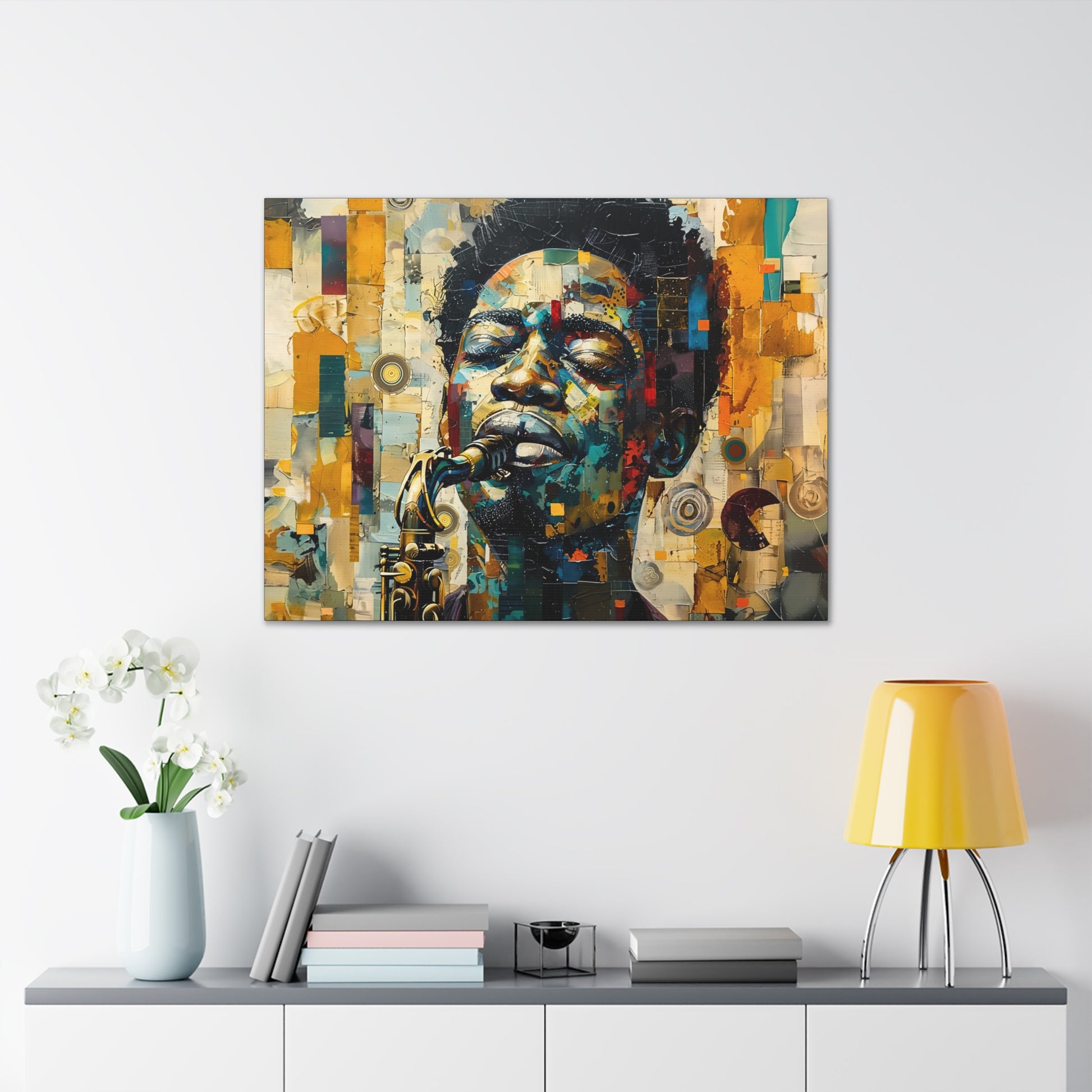 The story and emotions behind this wall art - 'Soul of the Sax' captures a moment of pure musical transcendence, focusing on the saxophonist's face as he loses himself in his art.