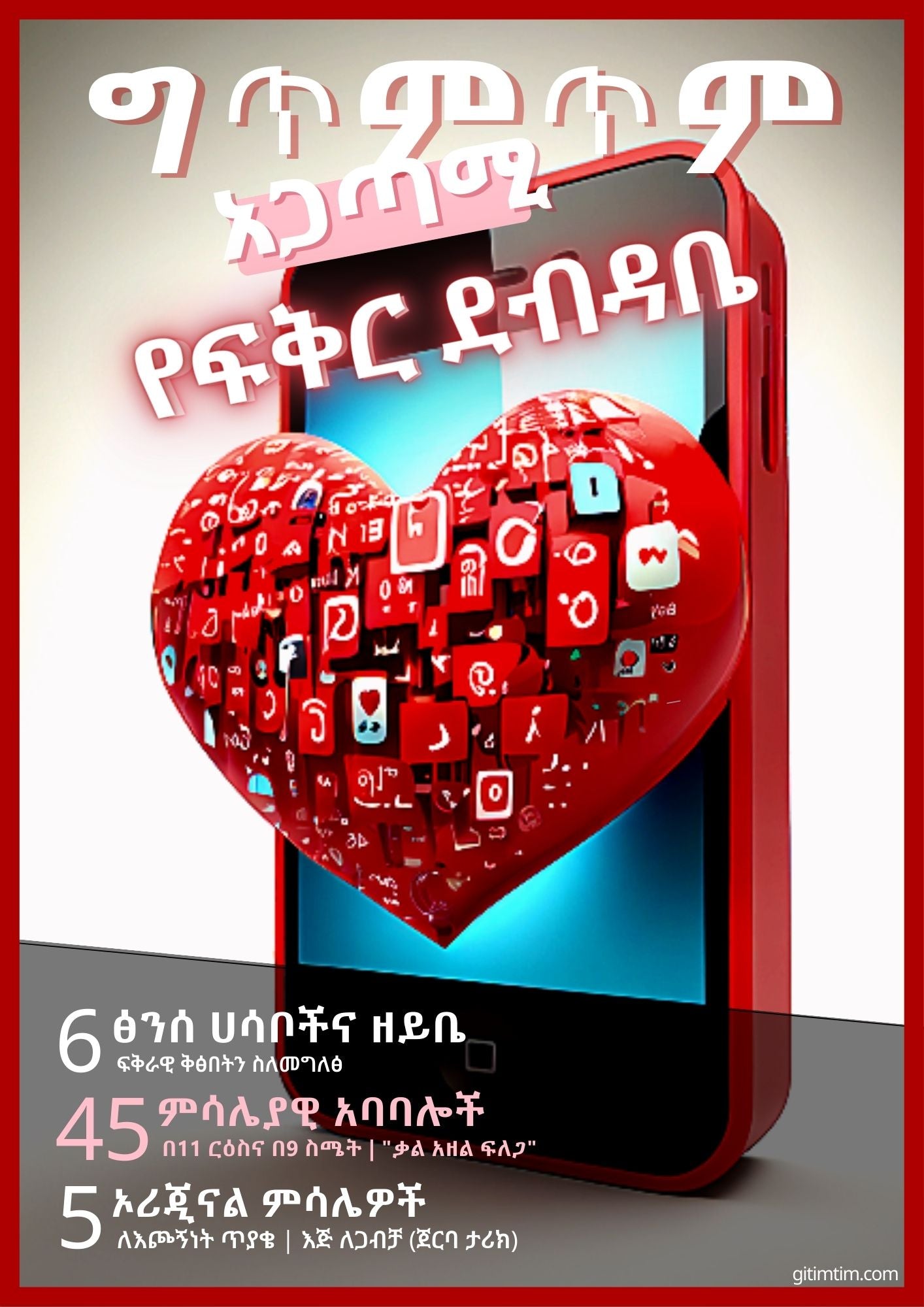 Welcome to the timeless art of writing love letters, using Gitimtim app. Delve into the language of emotions, as we guide you on a poetic journey through the depths of heartfelt expressions. This ebook contains -