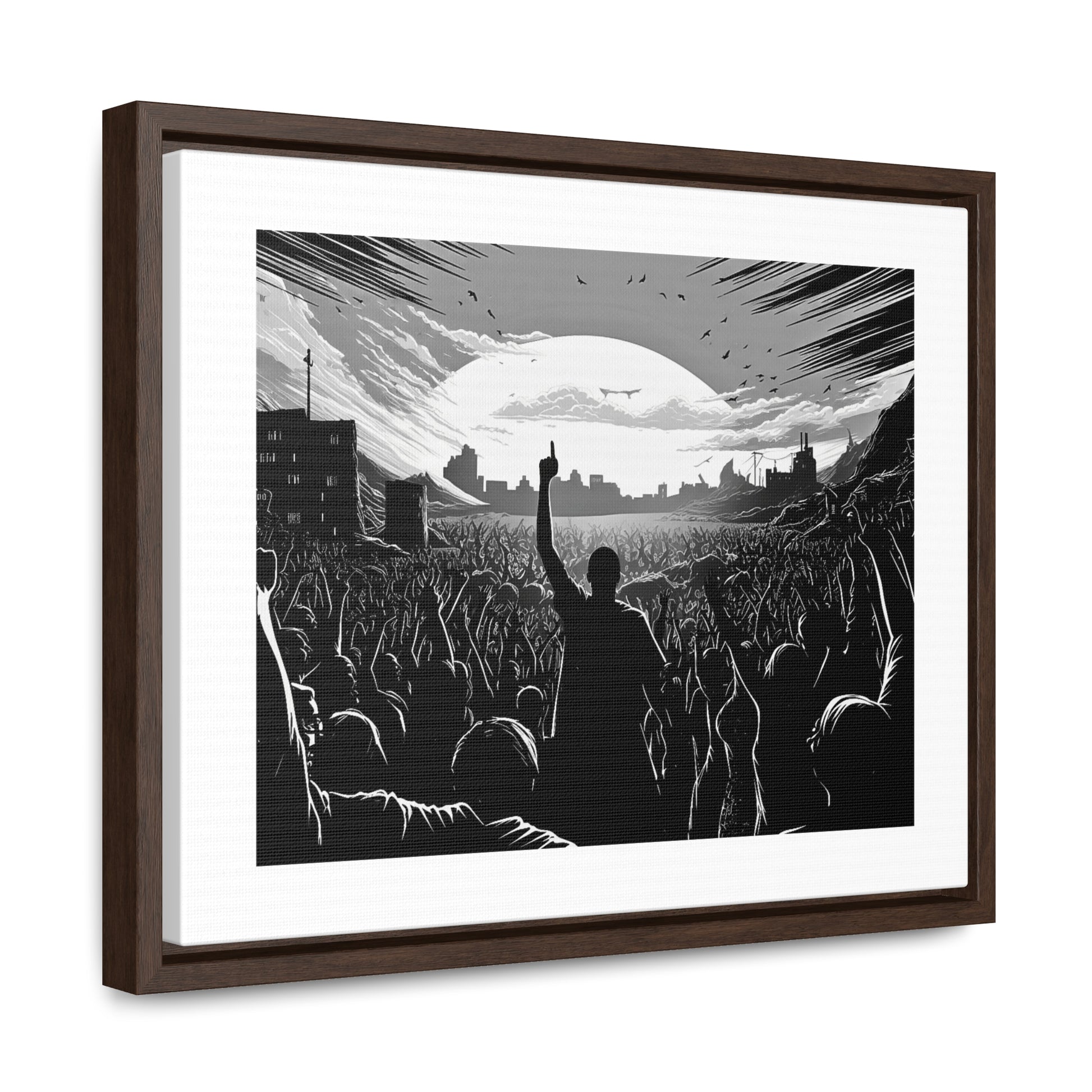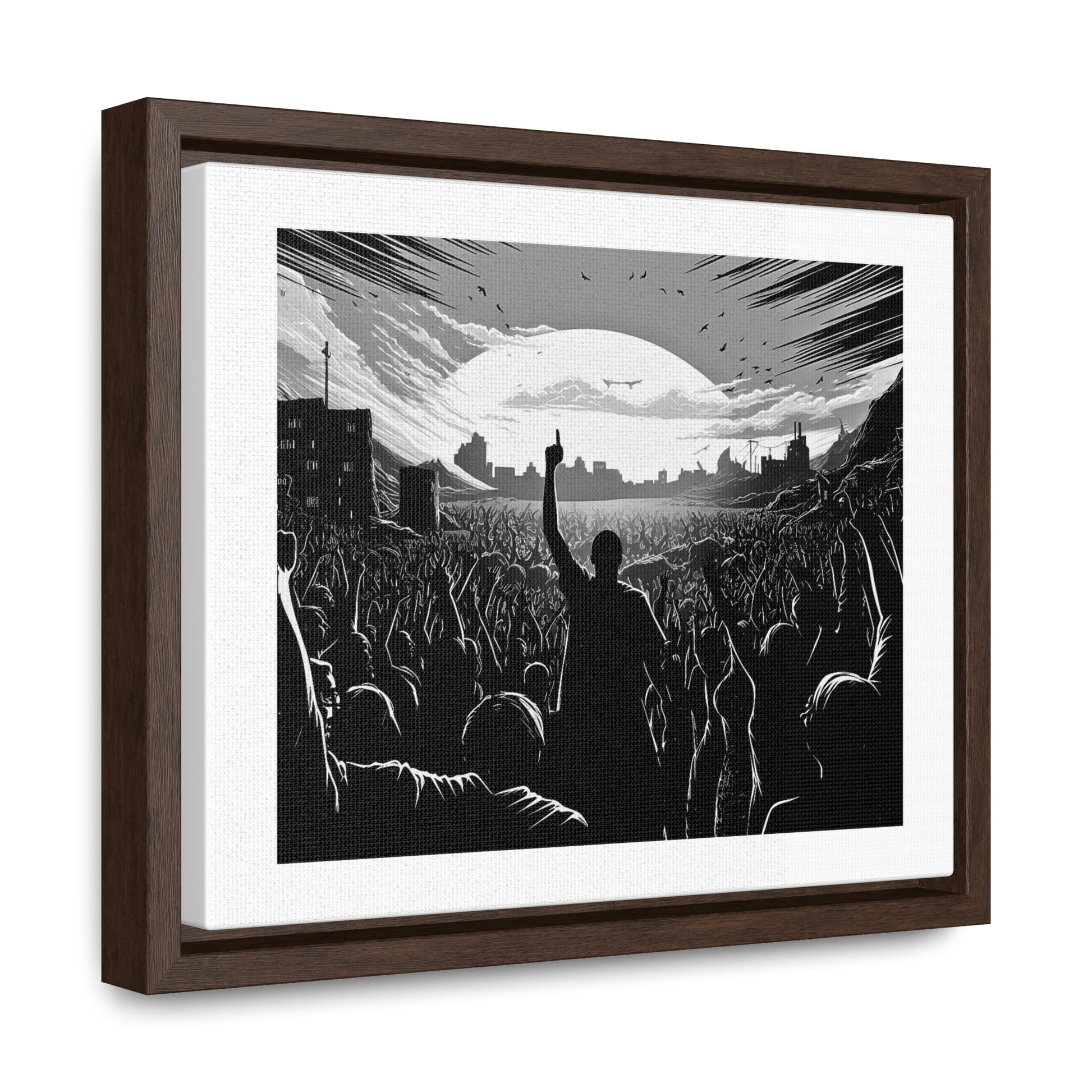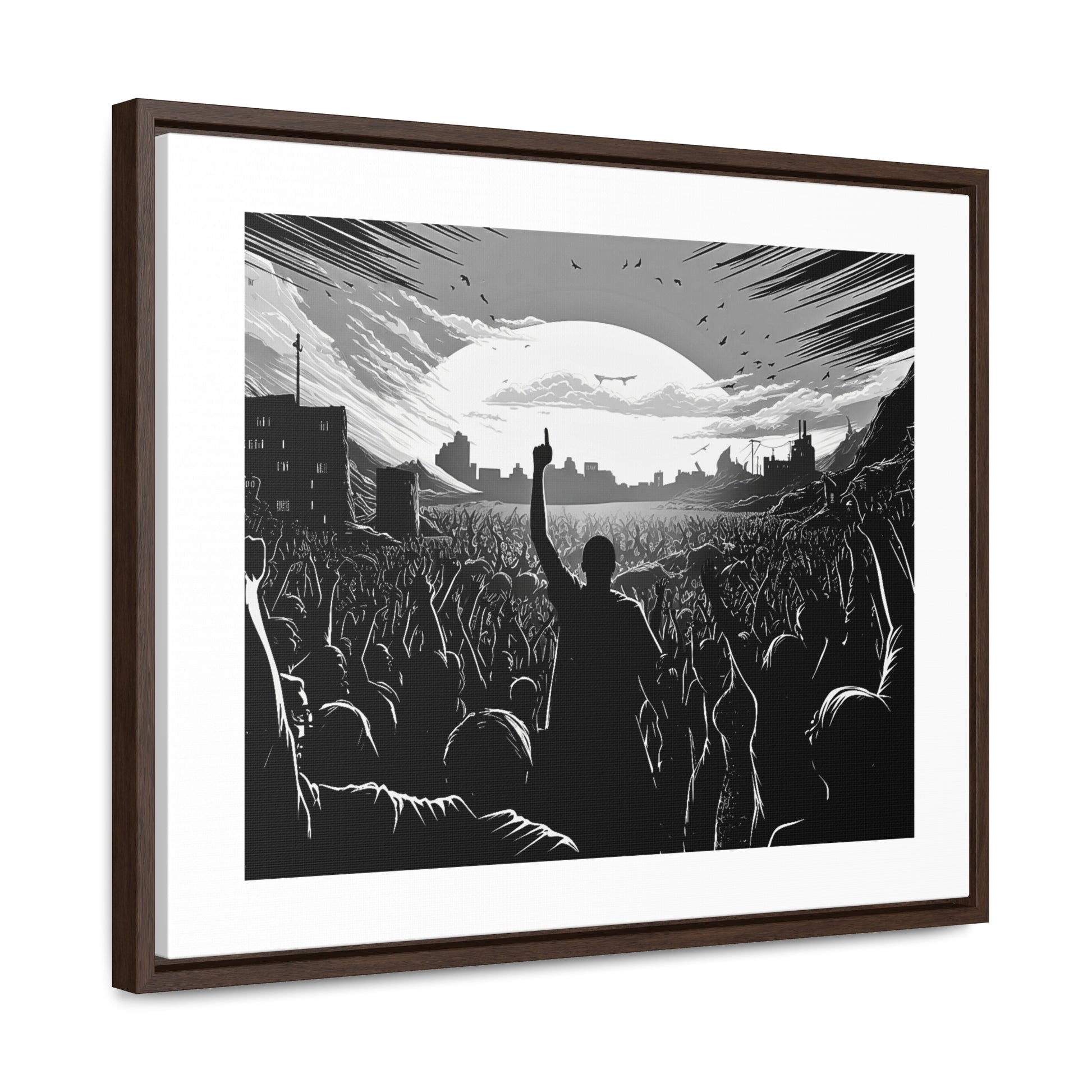 The story and emotions behind this wall art - Fury bleeds across the canvas, the sky burning with the fever of discord. Against the backdrop of a rising sun, a sea of impassioned Ethiopians protests ethnic divisions.