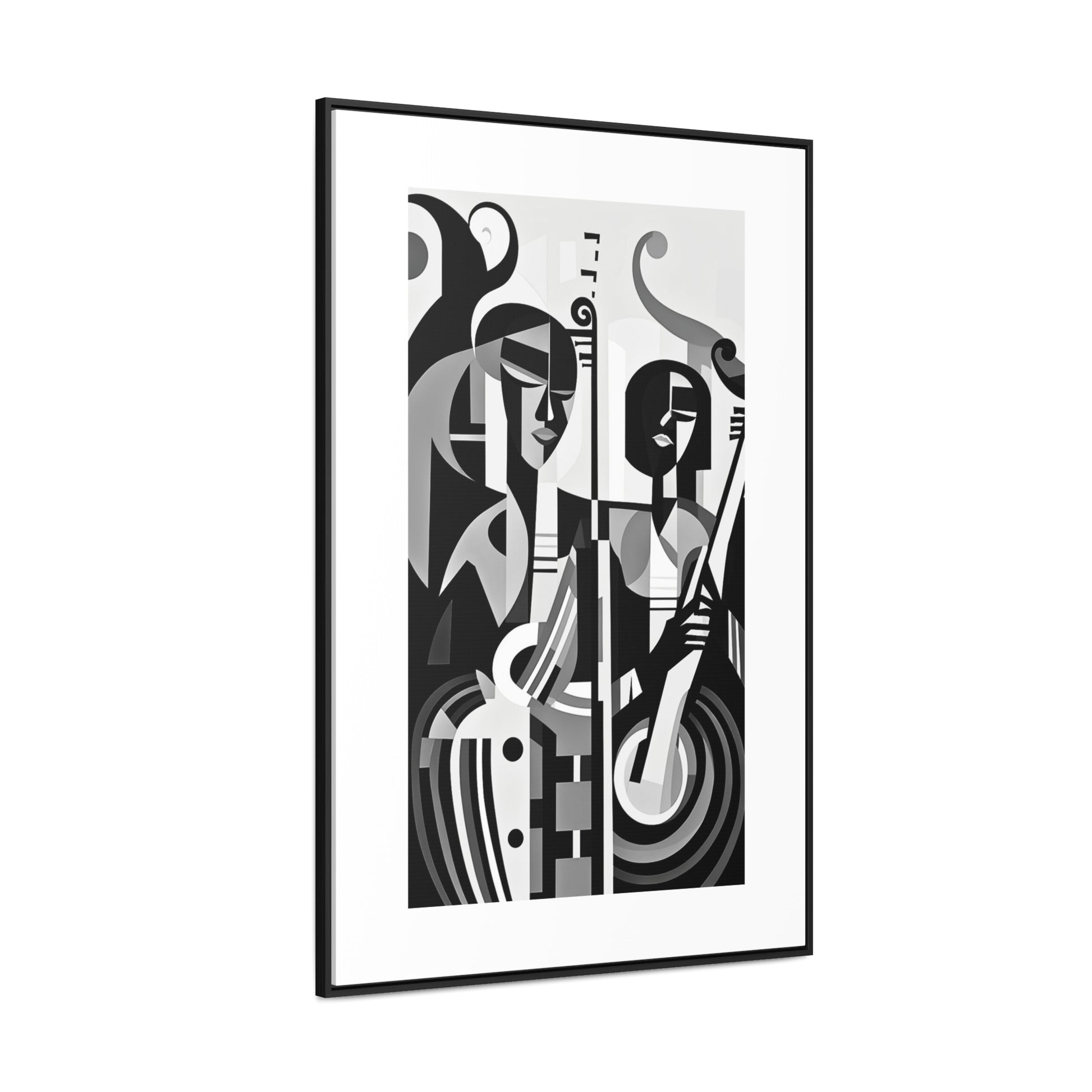 The Melodic Duo - Framed Canvas b&w Wall Art