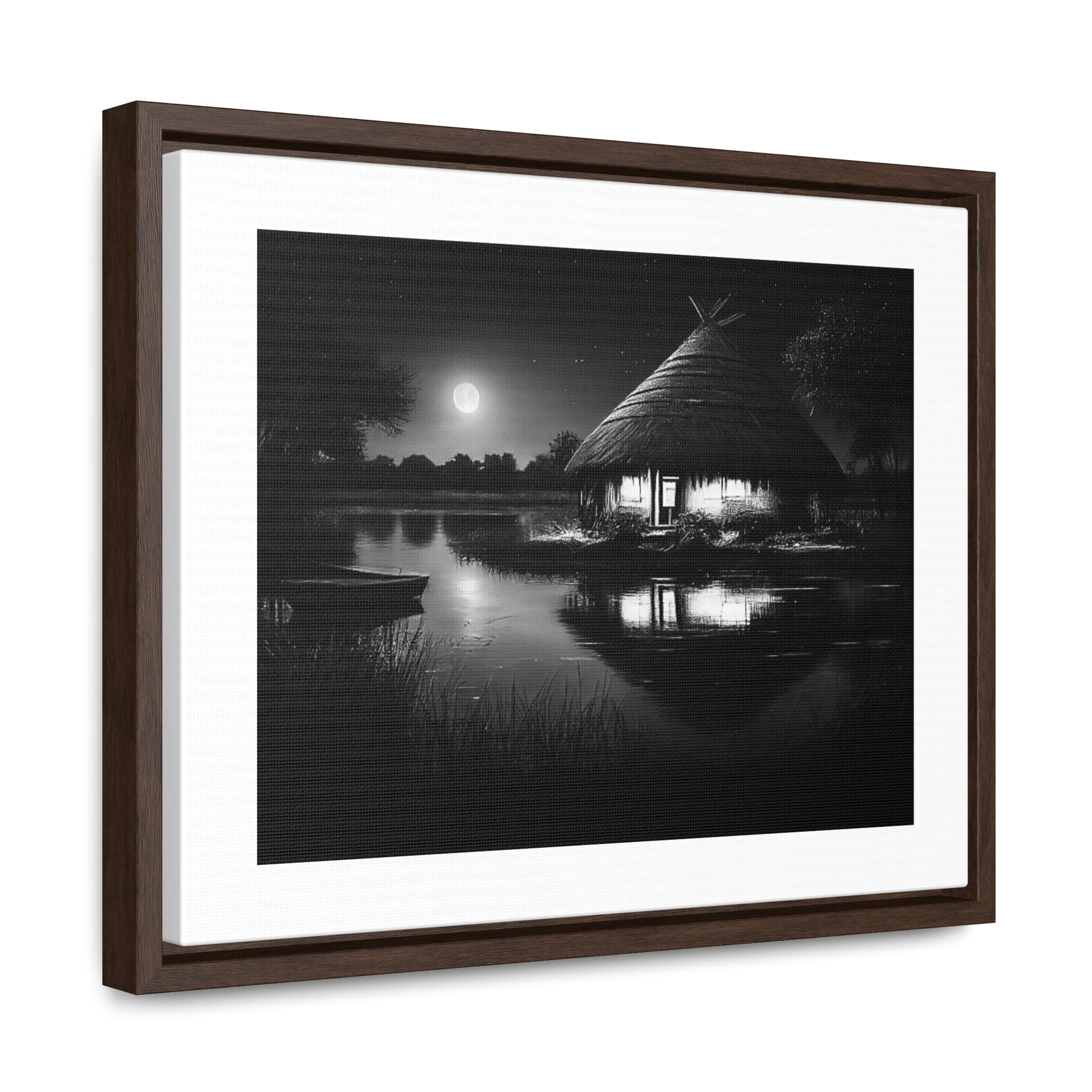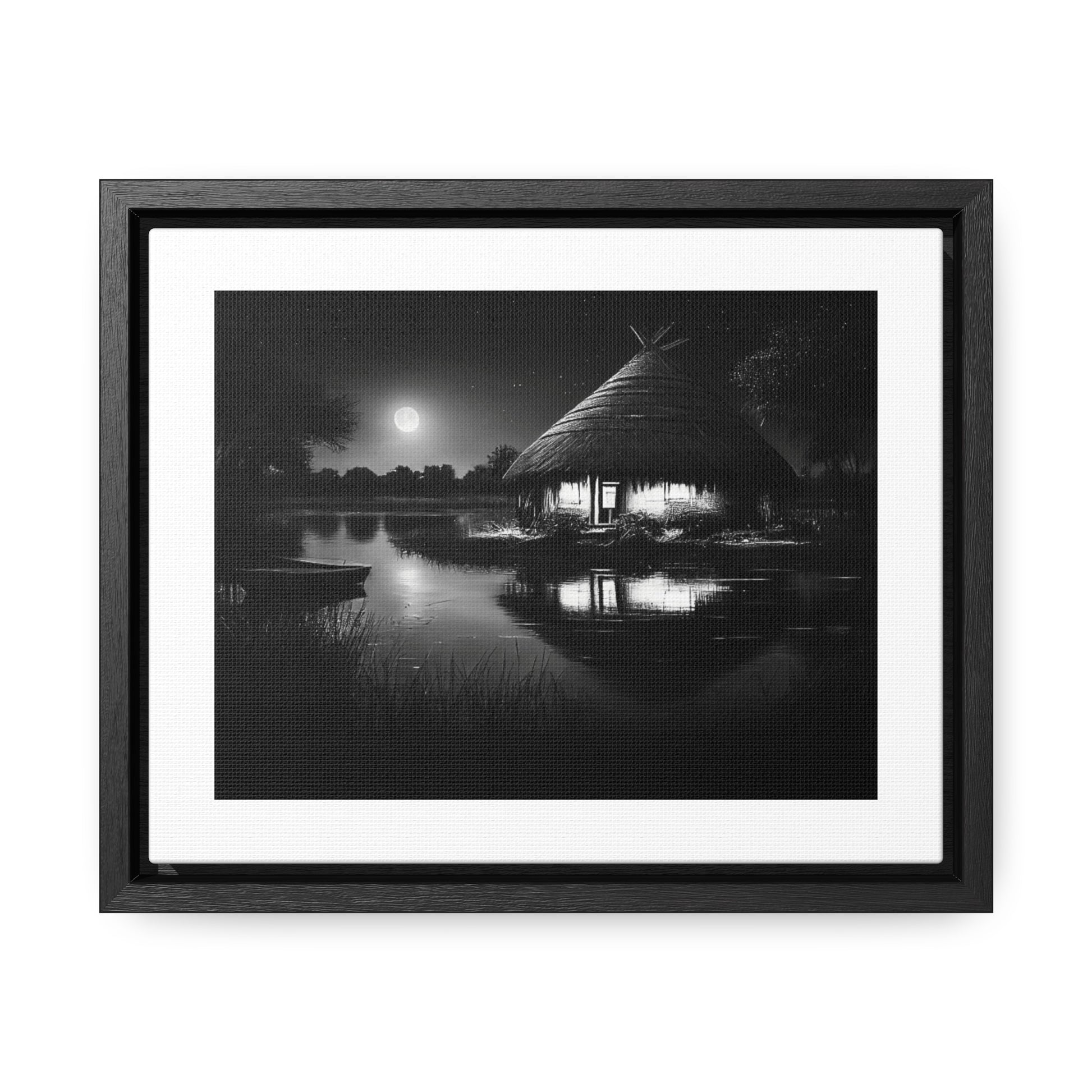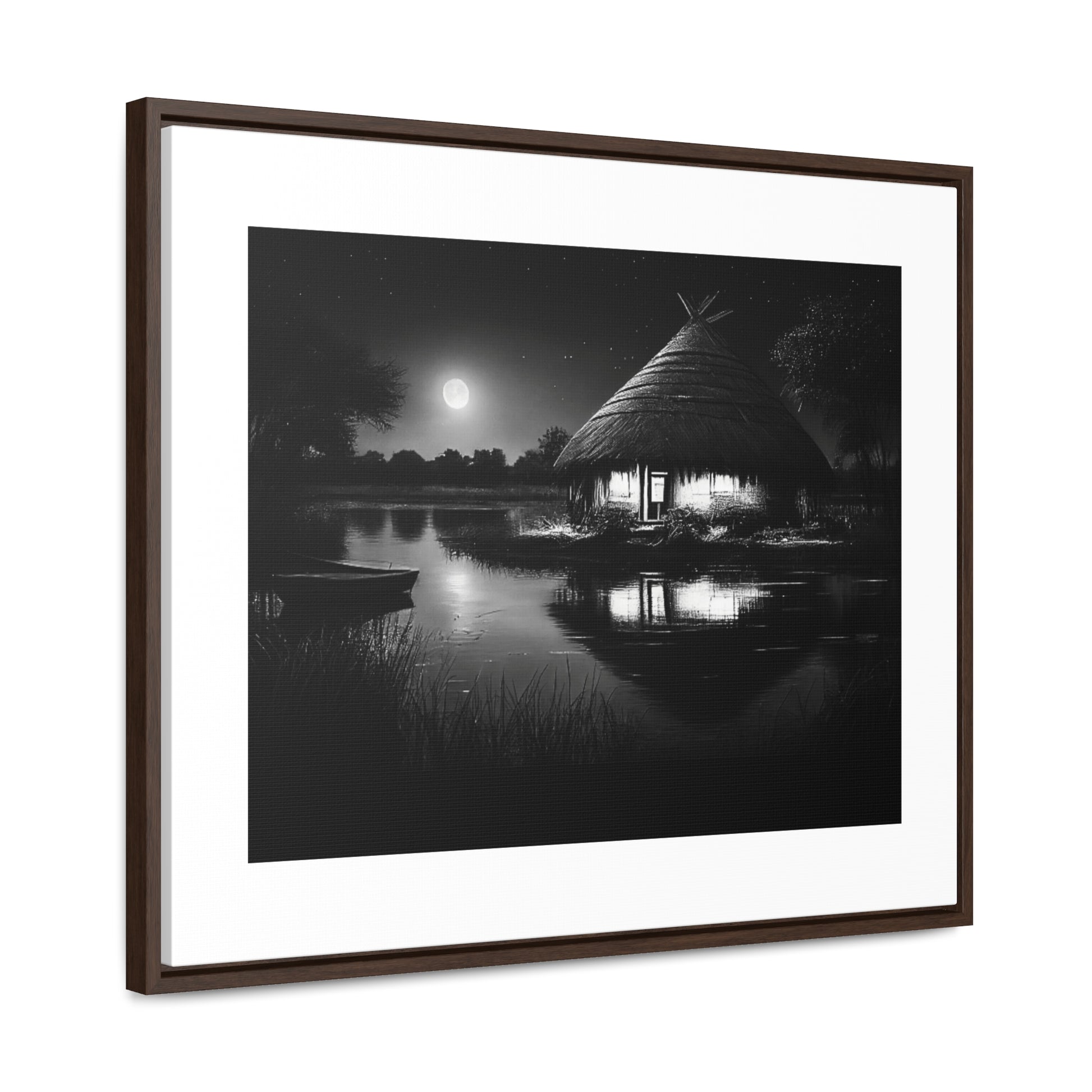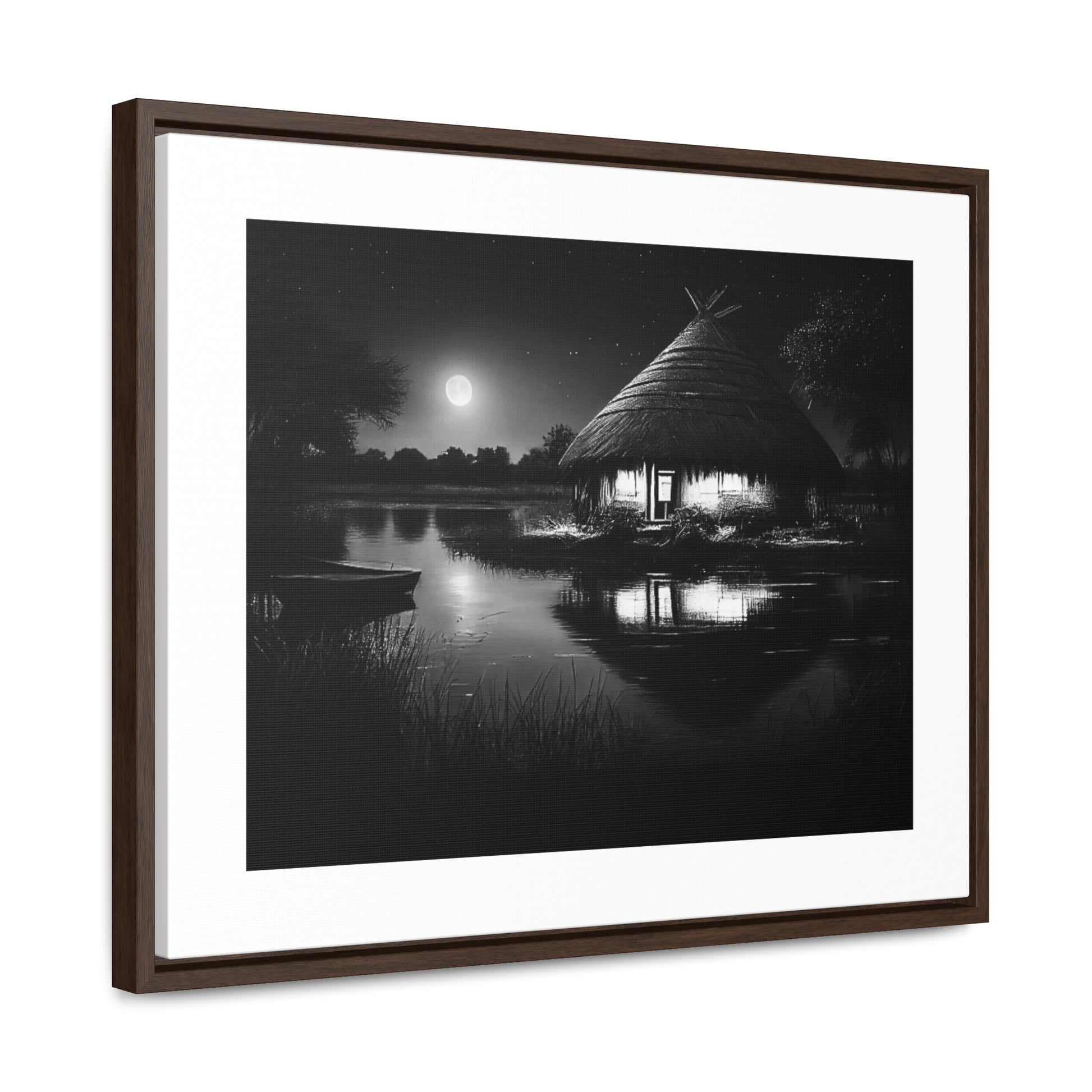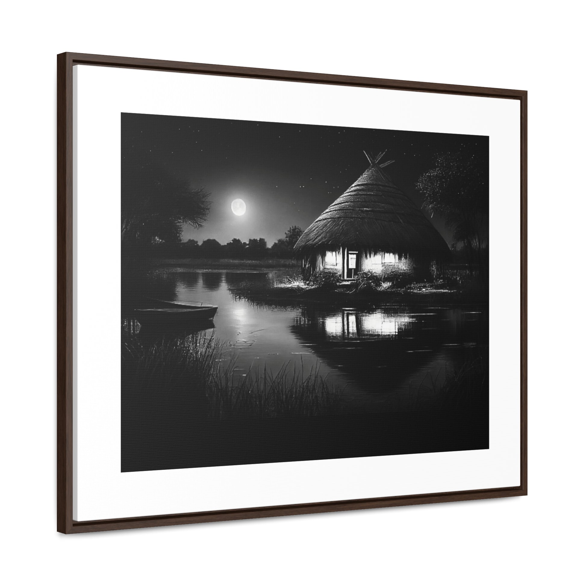 Moonlit Serenity - Framed Canvas b&w Wall Art