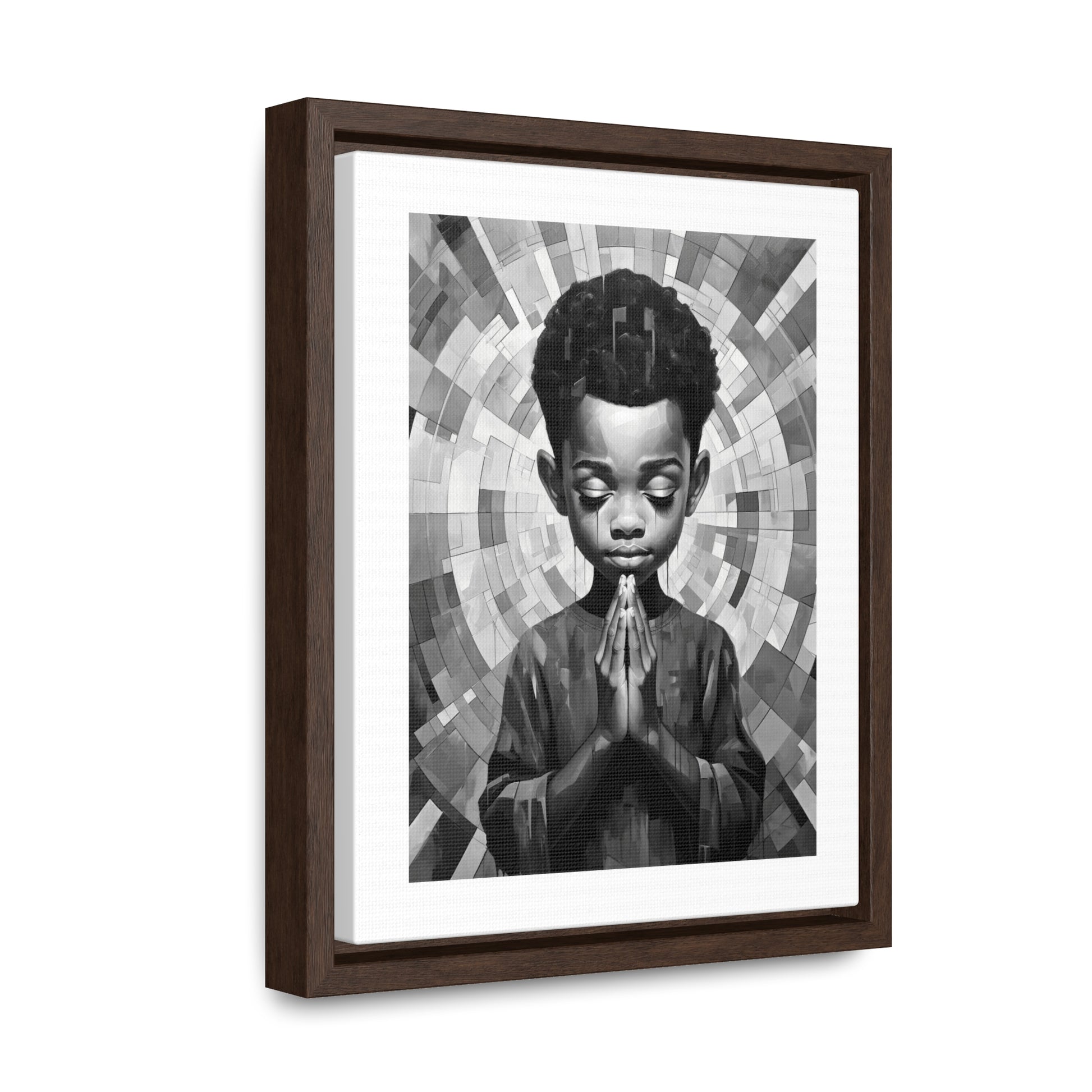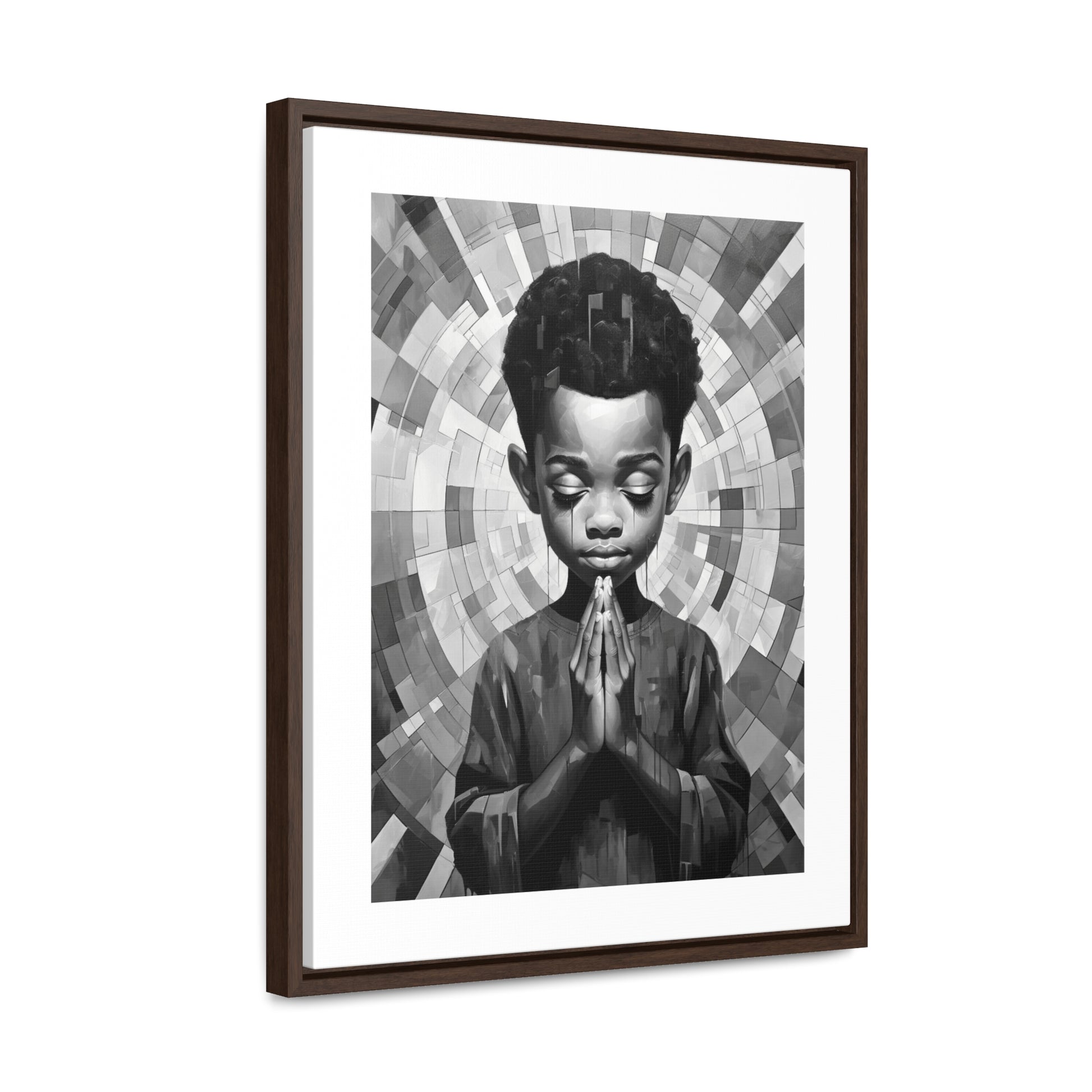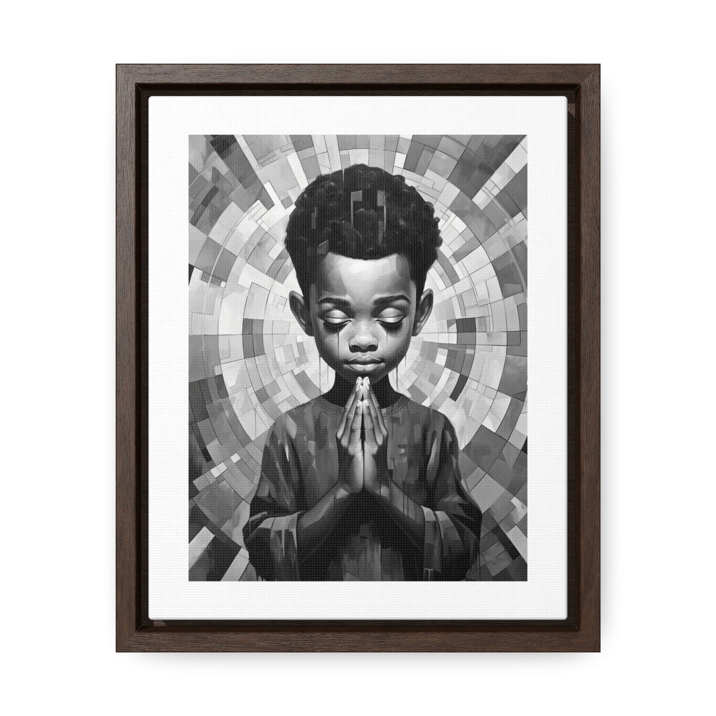 The boy, hands clasped and eyes closed, prays in quiet reverence, a hopeful call for strength and grace. In this moment, the seeds of goodness and wisdom take root, forming the core of a life led with purpose and love.