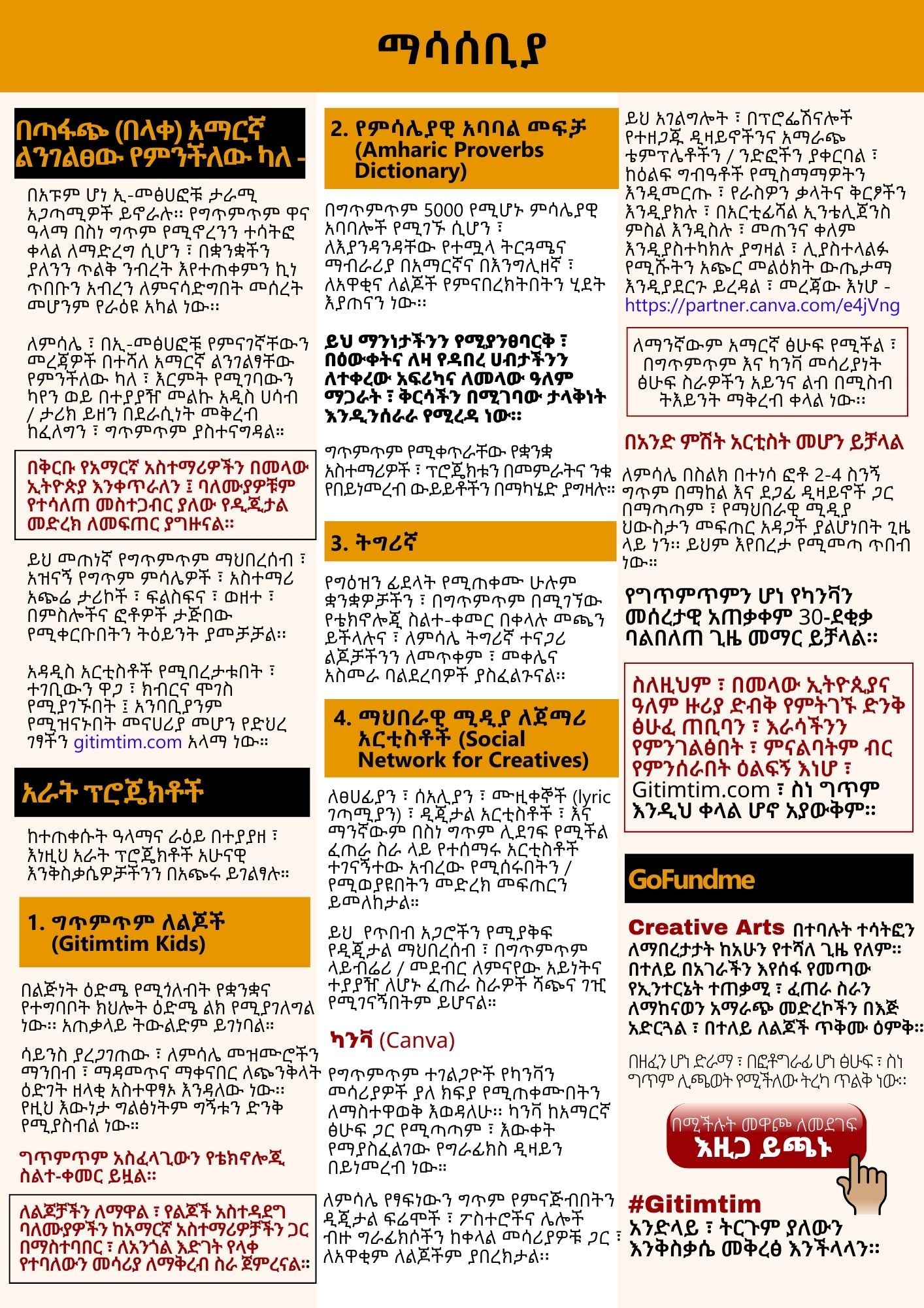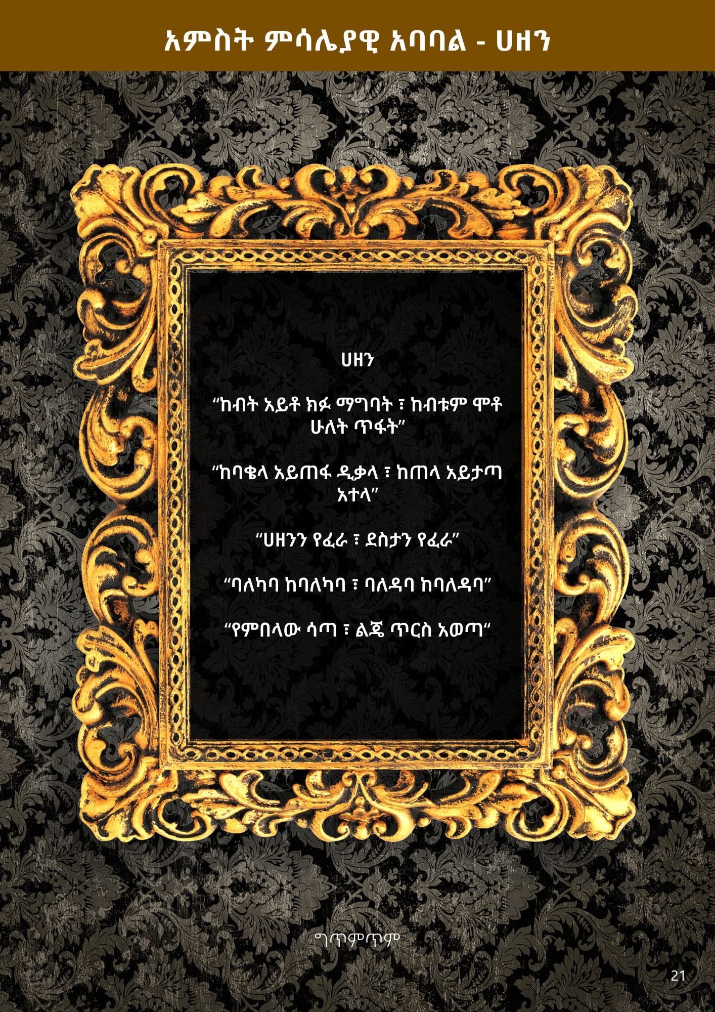 - Five Amharic Proverbs,
