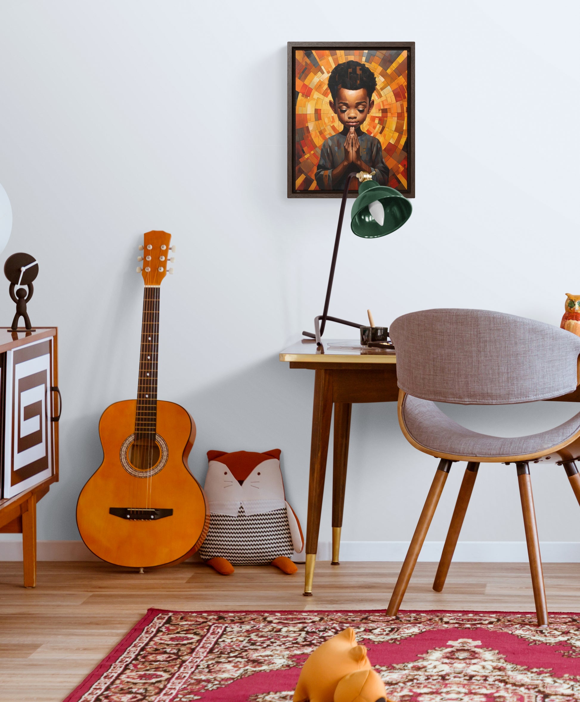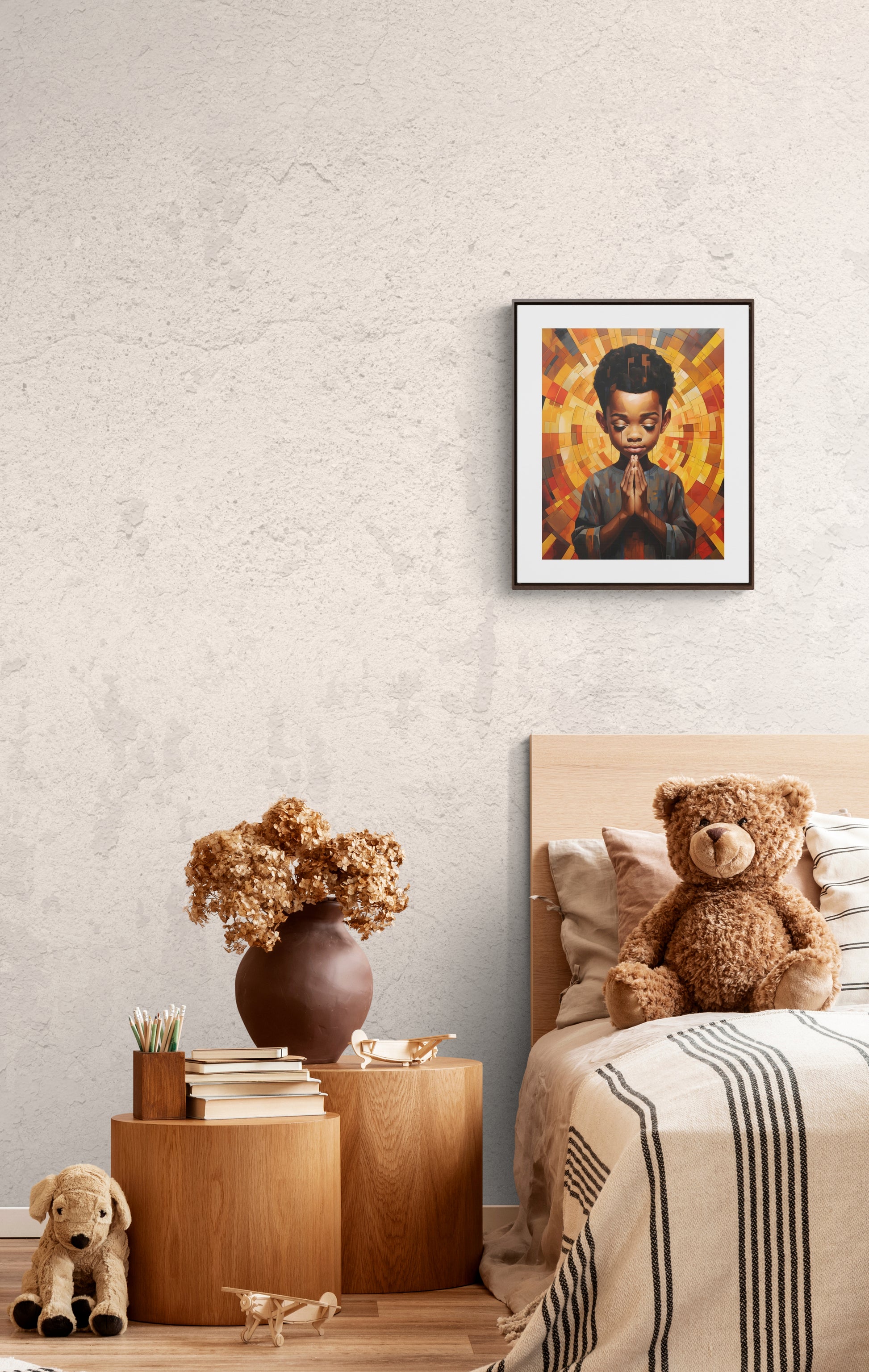 The story and emotions behind this wall art - 'Radiance of Grace' captures a tender moment of devotion and strength, a tribute to the purity of a child's prayer and the powerful foundation it sets for life.