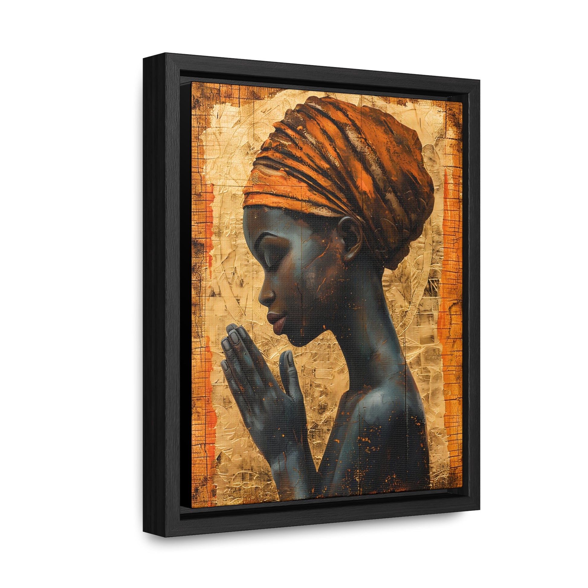 The story and emotions behind this wall art - Whispers of Hope II is a portrayal of a young girl in prayer, embodying the purity and depth of faith. Her hands centered by the heart in a silent plea, her eyes closed in devotion, radiating the strength that comes from within. The warmth of her spirit creates a connection that transcends time, rooted in Ethiopian tradition.