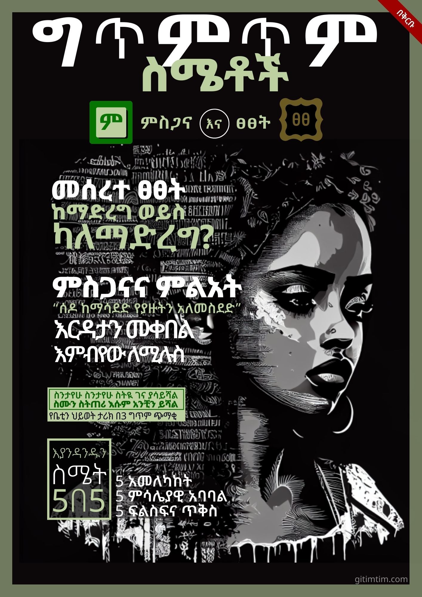 - Five Amharic Proverbs,