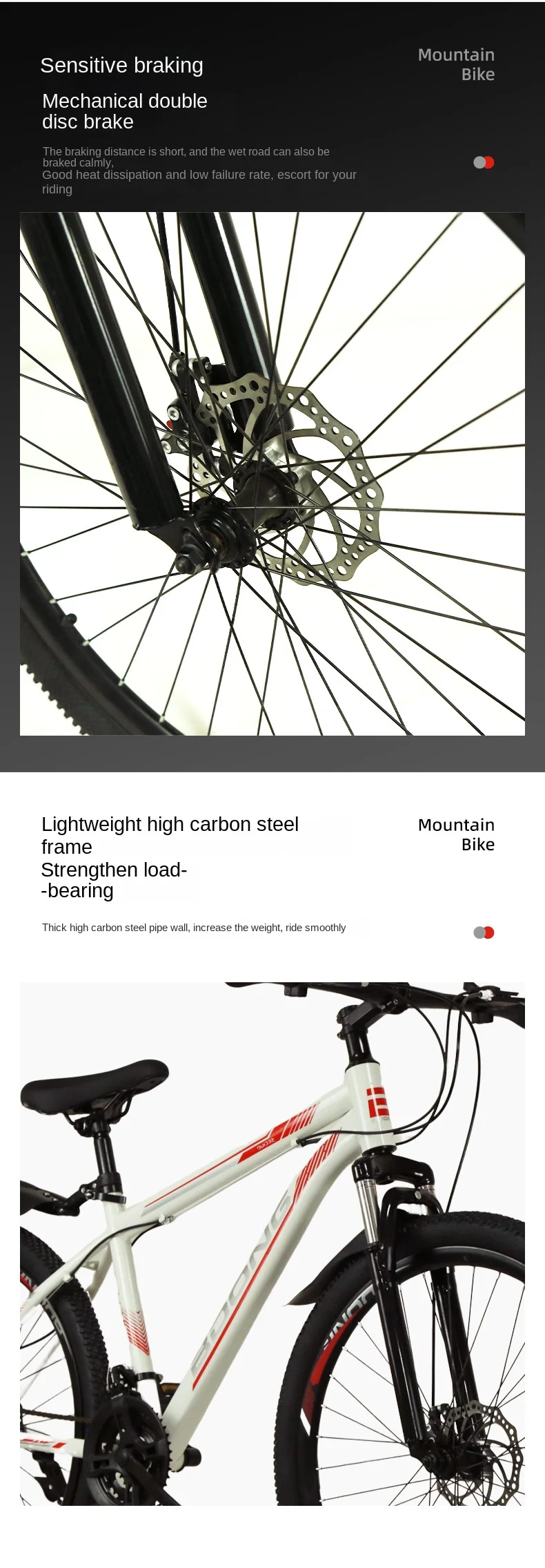 Mountain Bike with Dual Disc Brakes, High Carbon Steel Frame for Enhanced Load-Bearing Capacity, Provides Protection for Cycling