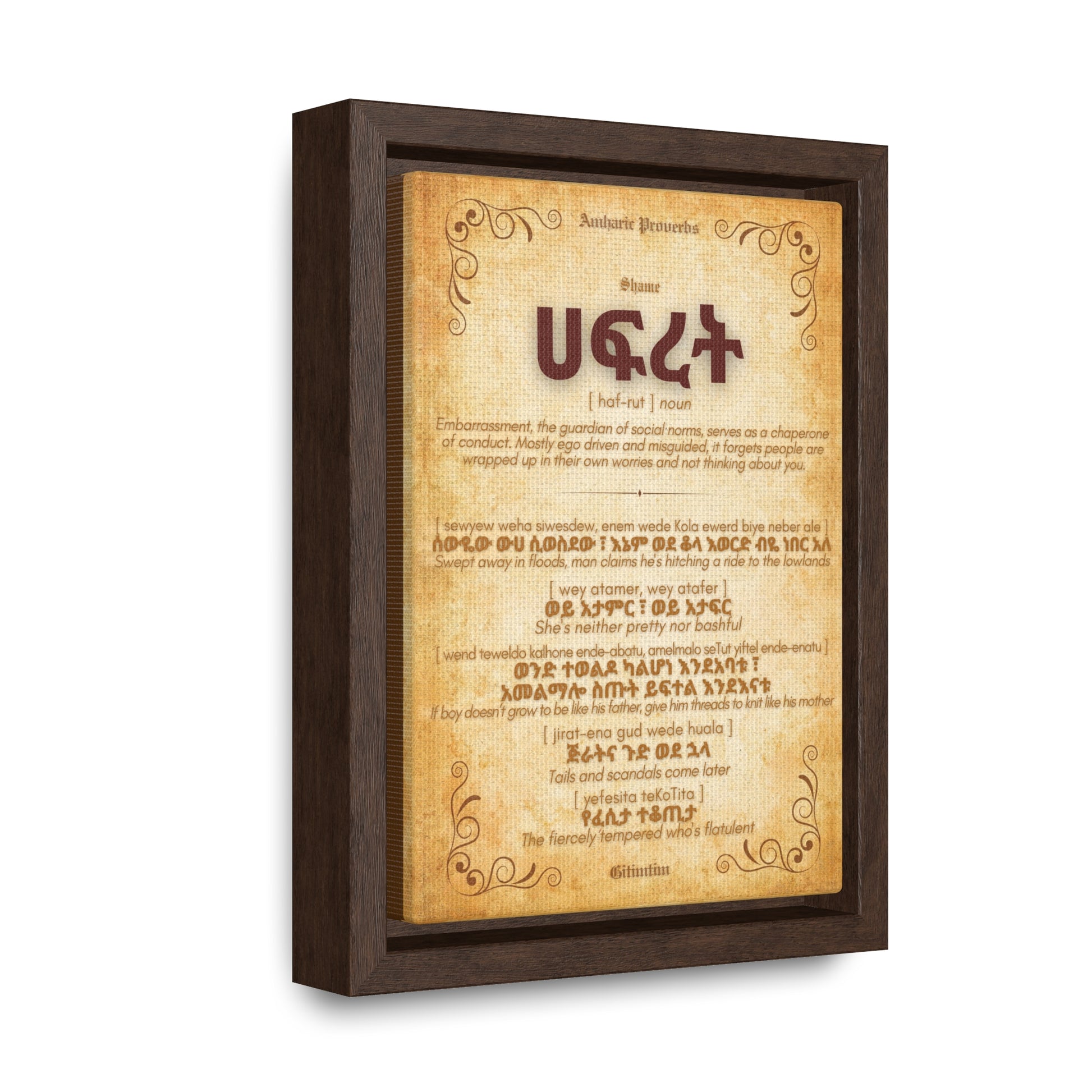 Shame by Amharic Proverbs - Framed Canvas Wall Art