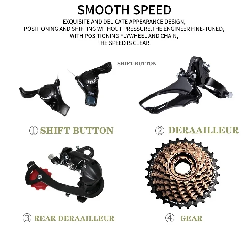 - Gears: 21/24/27/30 Speed for versatile terrain handling